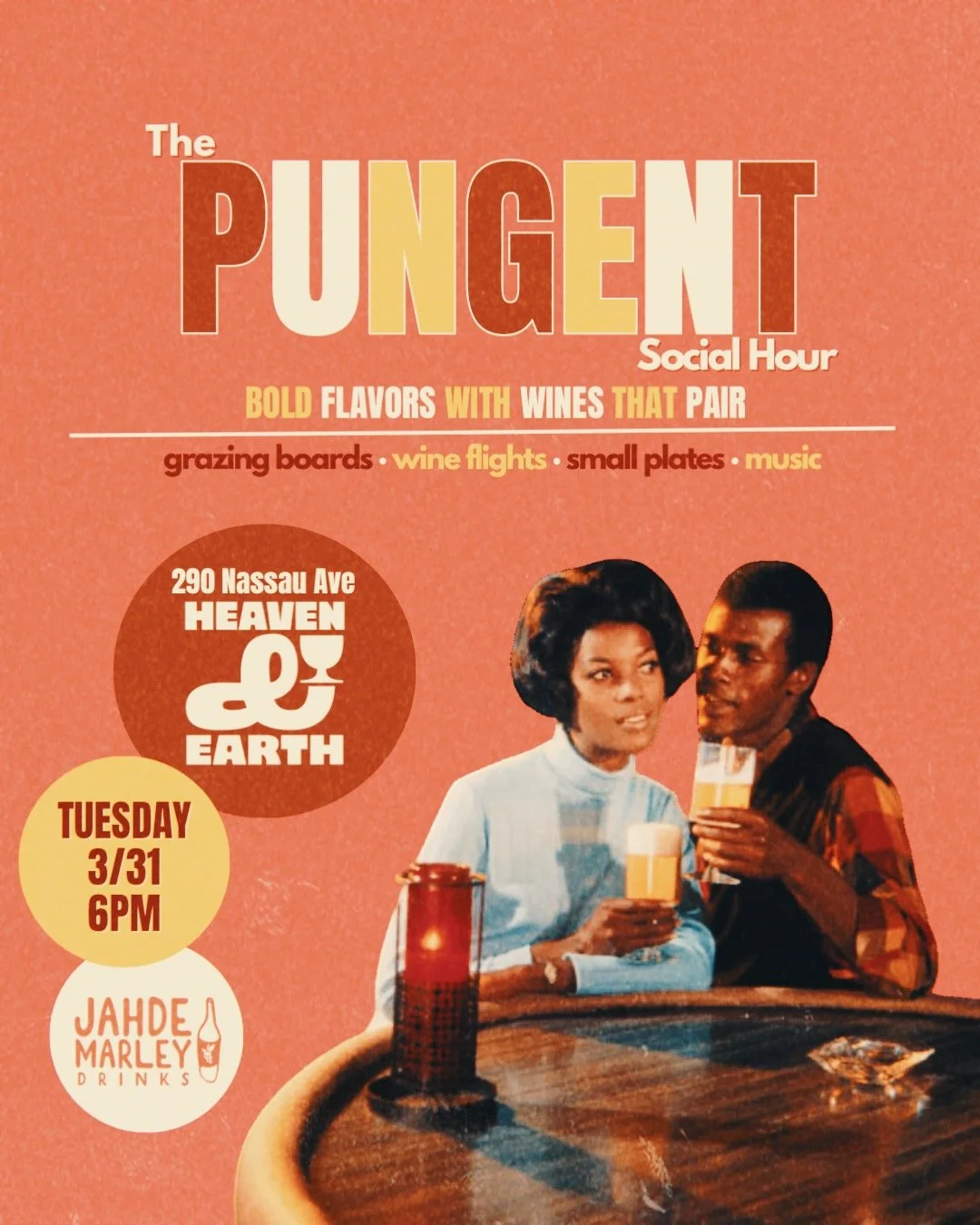 THE PUNGENT SOCIAL HOUR in collaboration with Tecla Esposito last Tuesday of the month at Heaven & Earth in Brooklyn, NY monthly social celebrating pungent flavor, art, and music with wines that pair